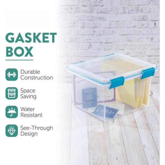 16-Pack Gasket Box, Weather-Resistant Storage Bins with Latching Lids, 32 Quart