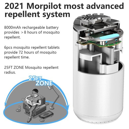 Portable Rechargeable Mosquito Repeller: Spmou's 25’ Protection Zone with 72-Hour Refill, No Spray or DEET