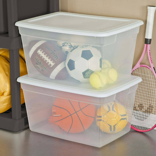 58 Qt Storage Box Clear Base White Lid Set of 8