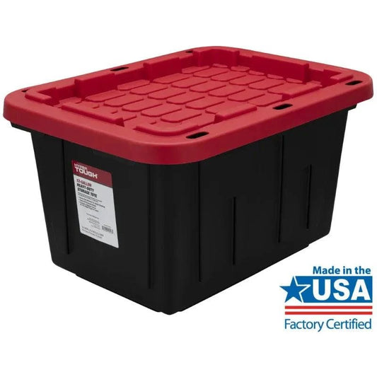 Hyper Tough 12 Gallon Snap Lid Storage Bin Container, Black with Red Lid, Set of 4 storage box