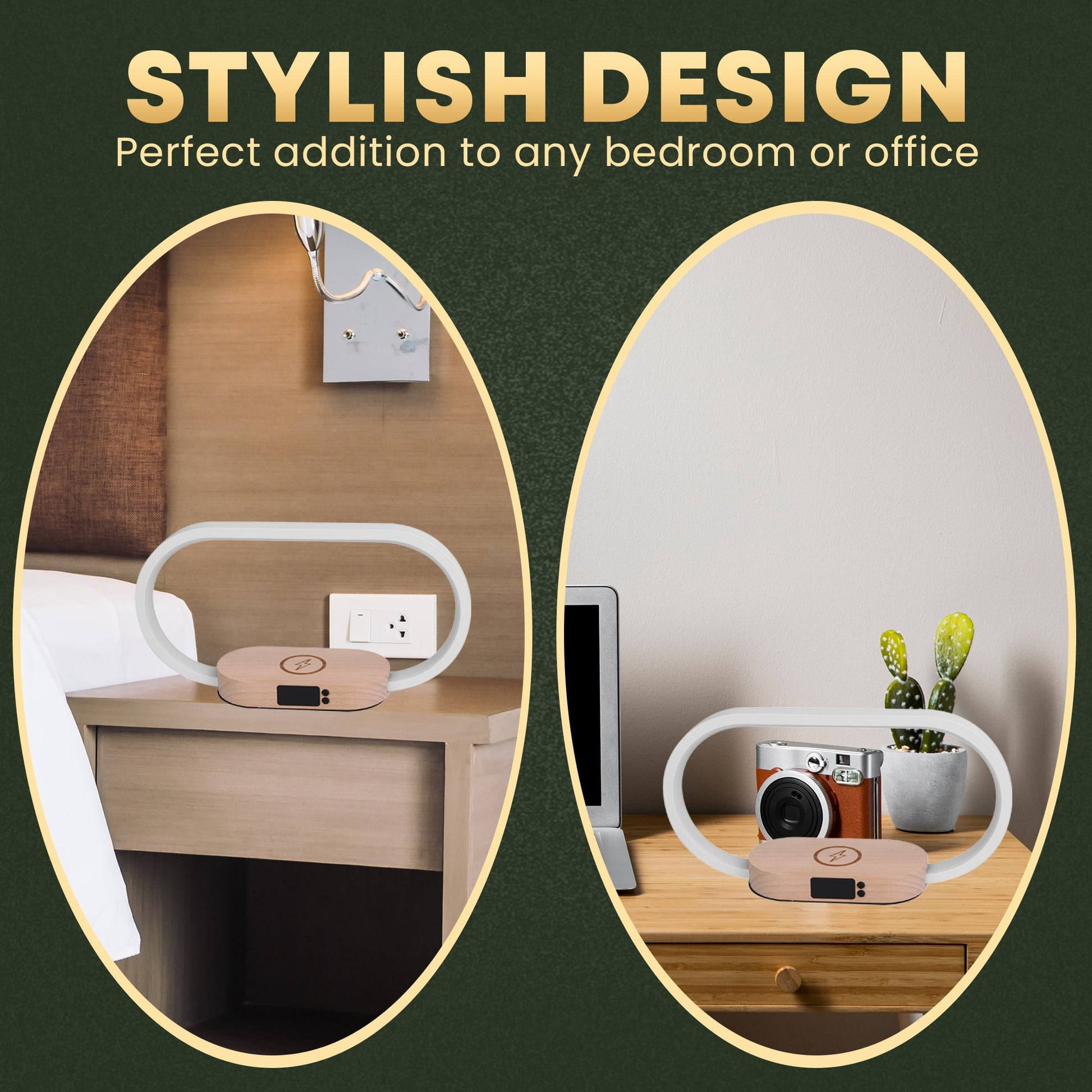 ✅💡 3-IN-1 DIMMABLE TOUCH LAMP - Transform your bedside into a stylish and functional space with our light alarm, Nightstand light LED table lamp, which comes with a built-in wireless charger and built-in moon phase clock, making it easy to keep track of time while you work, study, read, or sleep, making it bedside alarm clock and wireless charging station..