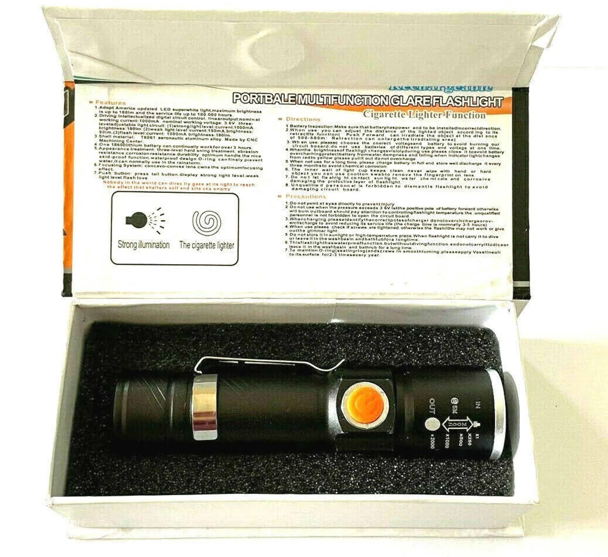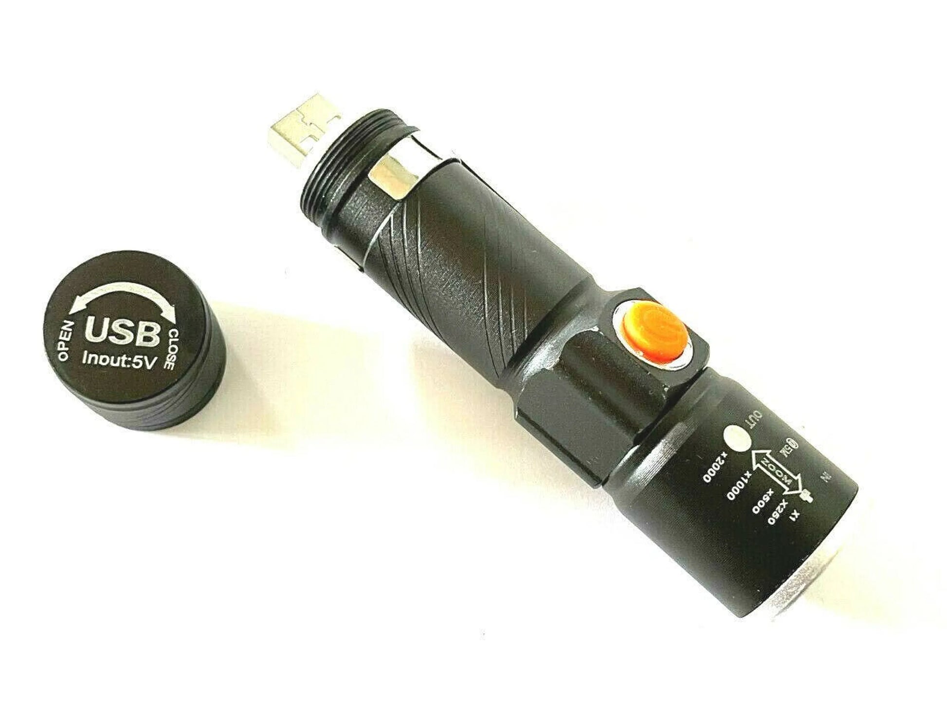 Super Ultra Bright Led USB Rechargeable Flashlight T6061 Zoom W/clip